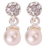 Yazilind Jewelry Design Flower Shape Crystal Inlay Venetian Pearl Silver Plated Mini Stud Earrings