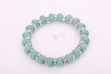Yazilind Vintage Tibetan Silver Crystal Round Rimous Green Turquoise Stretch Bangle Bracelet