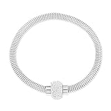 Ornami Silver Plated Steel Mesh Bracelet with Crystal Bead Fastener of 19cm
