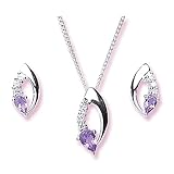 Chic Silver Amethyst/Cubic Zirconia Fancy Pendant and Earring Set with 46cm Chain