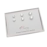 Set Of 3 Sterling Silver CZ Stud Earrings 4mm, 5mm, 6mm Gift Boxed
